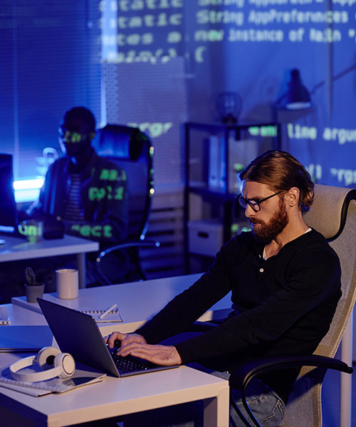 Nossa equipe domina o ciclo completo de desenvolvimento. Da modelagem complexa de bancos de dados até interfaces web intuitivas, garantimos códigos limpos, performáticos e uma arquitetura robusta que sustenta sua operação.